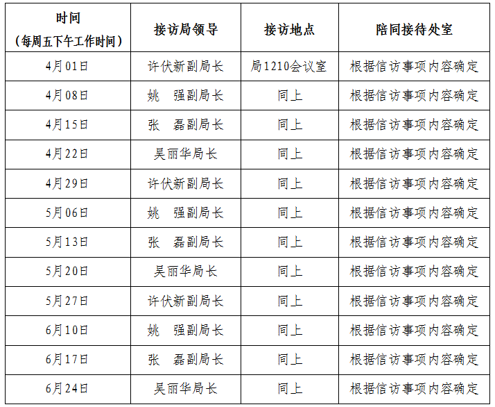 为提高信访接待质量,来访人应事先联系并提交相关信访资料,经审核确需现场接访的,安排局领导及相关处室陪同接访;如属一般性信访事项或投诉咨询,经来访人同意,可按一般程序直接交相关职能处室办理。局领导工作分工详见J9九游会网站“J9九游会娱乐”栏目。